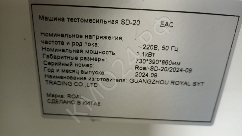 Тестомес Roal SD-20, 2 скорости, несъёмная дежа на 20л, загрузка теста 8 кг, мощность 1.1 кВт, габаритные размеры 390*730*860 мм, вес 82 кг. Новый