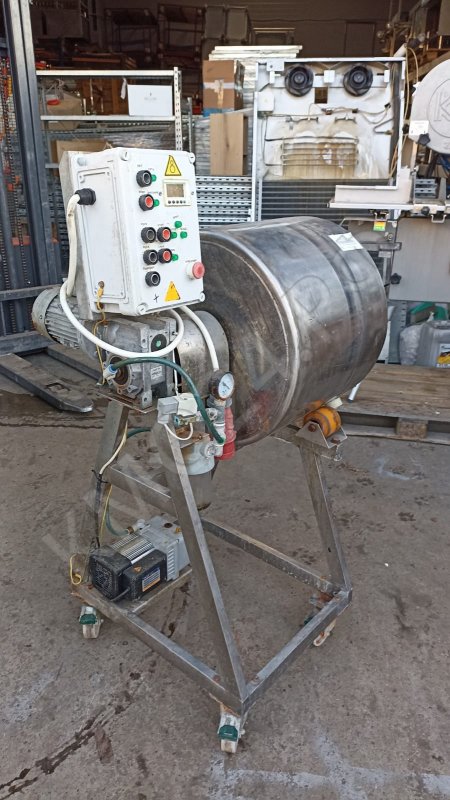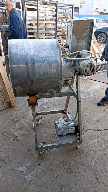 Массажёр вакуумный ДПП-107-100(Н), объём барабана 100 л, загрузка 70 кг, мощность 1.5 кВт, габаритные размеры 850*800*1400 мм, вес 90 кг. Россия.